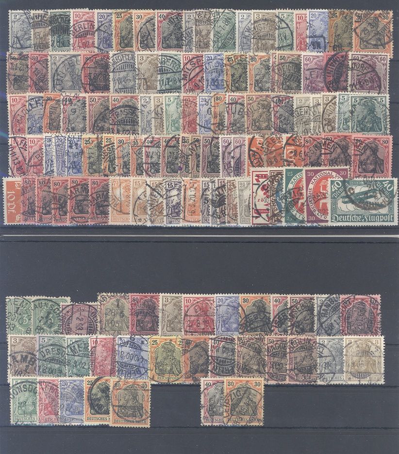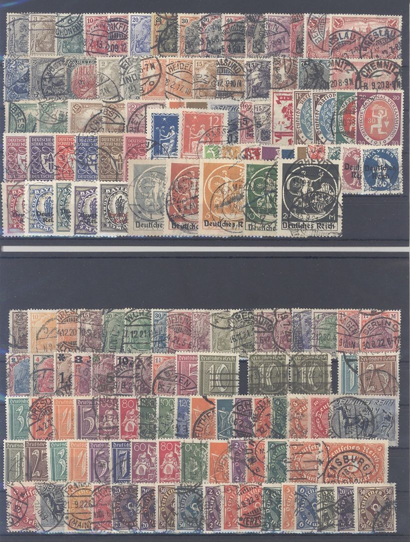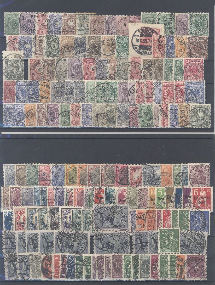 Deutsches Reich, gestempelter Posten aus den Jahren 1875/1920 auf 12 Steckkarten, einfach zusammengesteckt. Vollkommen unberechnet, sollte bereits aufgrund der Materialfülle ein nettes Schnäppchen sein...