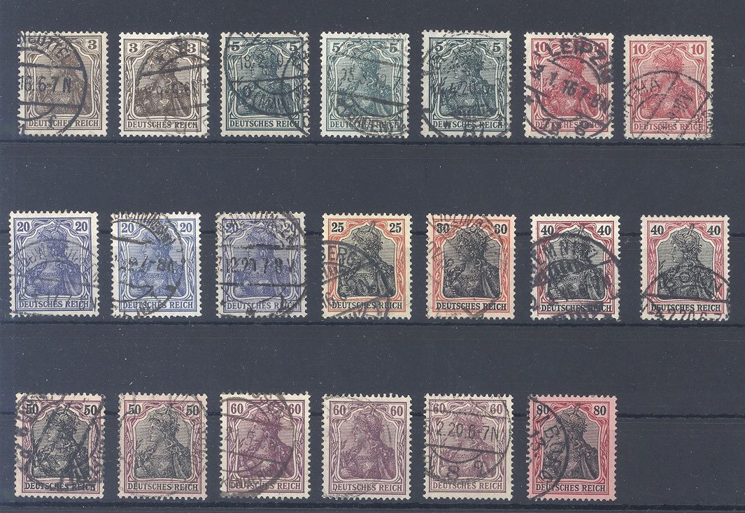 Deutsches Reich, gestempelter Posten aus Michel Nummer 84/97 II, Freimarken 1915 auf Steckkarte. Jeder Wert ist signiert oder geprüft, hat bereits einiges gekostet.