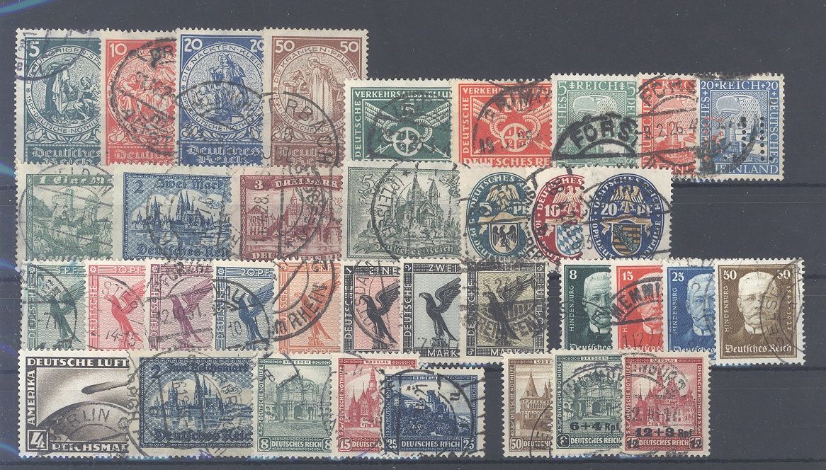 Deutsches Reich, netter gestempelter Posten besserer Sätze auf Steckkarte, dabei auch bessere Werte und Sätze wie Michel Nummer 351/54, 378/84, 403/06 und 459/62.