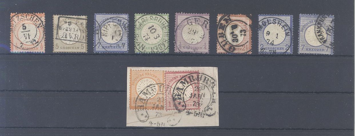Deutsches Reich, gestempelter Posten Brustschildausgaben mit auch einem schönen Briefstück. Die losen Marken werten bereits mit 705,00 Euro.