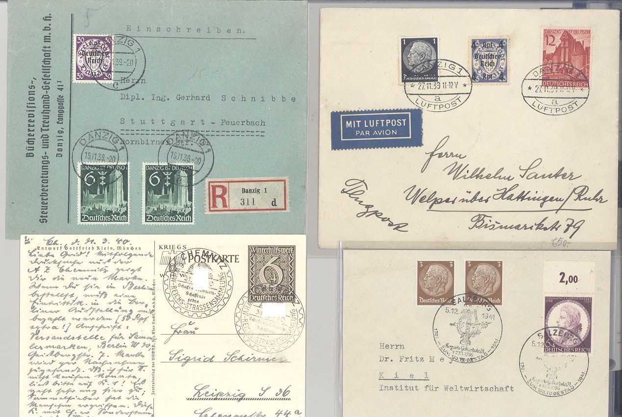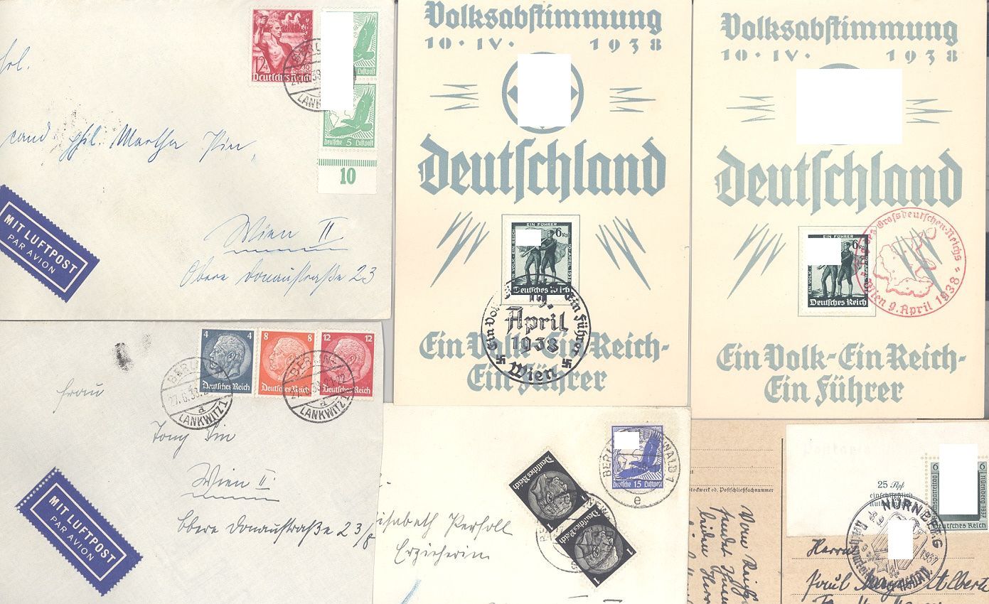 Deutsches Reich, interessanter und bunter Belege Posten bestehend aus 10 Belegen mit auch Luftpost nach Wien. Ein Einblick ist eingescannt, sehr schöne Ergänzung zur Sammlung....