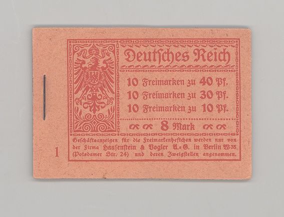 Deutsches Reich Markenheftchen Michel Nummer 14.1 A, Germania 1921 ** mit teilweise leichtem Klammerabdruck auf den Blättern und kleineren Mängeln rückseitig,