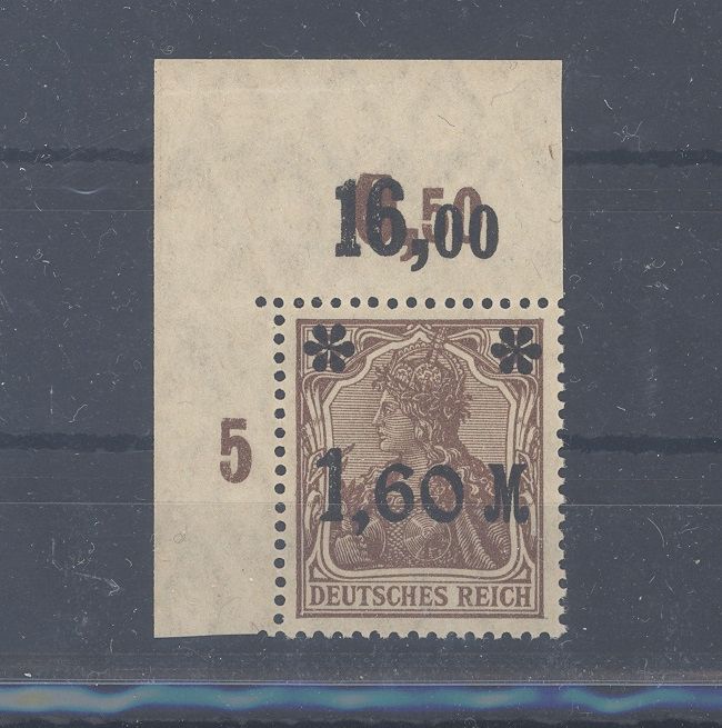 Deutsches Reich Michel Nummer 154 II b, die 1,60 Mark Freimarke 1921 in der Type II und der guten Farbe b ** als Oberrandwert sogar aus der Ecke, ein schöner Wert. Der Wert ist geprüft BPP, Seltenheit!