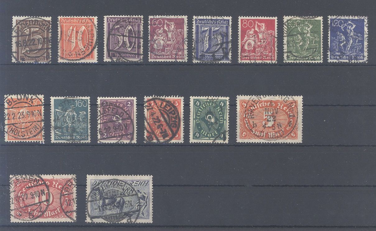 Deutsches Reich Michel Nummer 177/96, Freimarken 1921 weitgehend komplett gestempelt, es fehlen nur die Michel Nummer 177/79 und 181, viele Werte sind geprüft Infla.