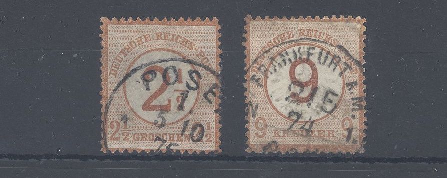 Deutsches Reich Michel Nummer 29/30, Freimarken 1874 gestempelt in Bedarfserhaltung.