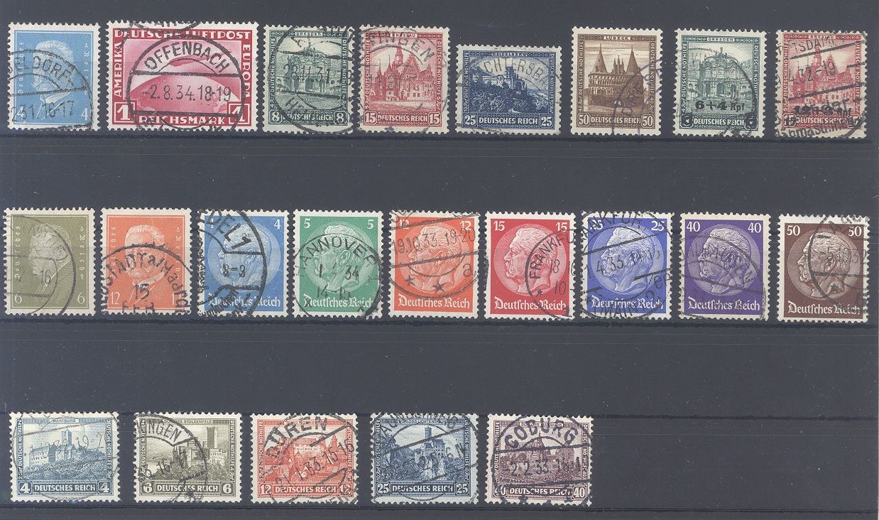 Deutsches Reich Michel Nummer 454/78, die Jahre 1931/32 fast komplett gestempelt, es fehlen nur die Michel Nummer 456/58.