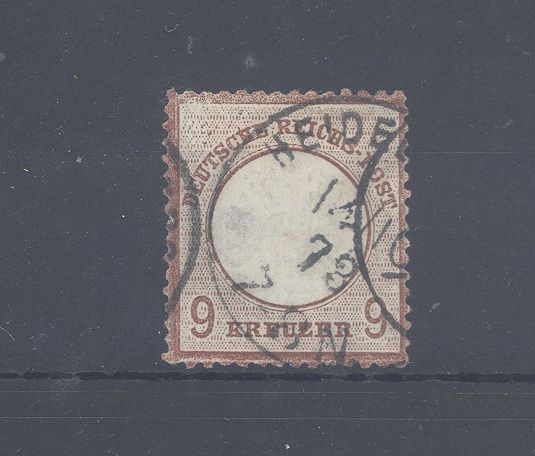 Deutsches Reich Michel Nummer 27b, 9 Kreuzer großes Brustschild gestempelt mit einer helle Stelle, sonst ordentlich.