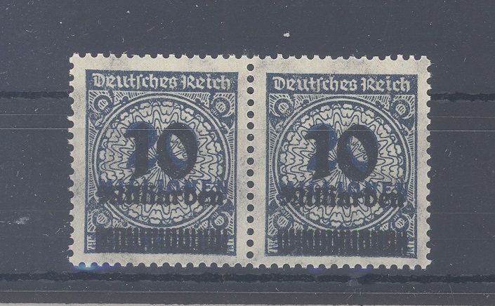 Deutsches Reich Michel Nummer 335 Wb, 10 Mrd. Freimarke 1923 als ** Paar. Beide Werte sind geprüft BPP.