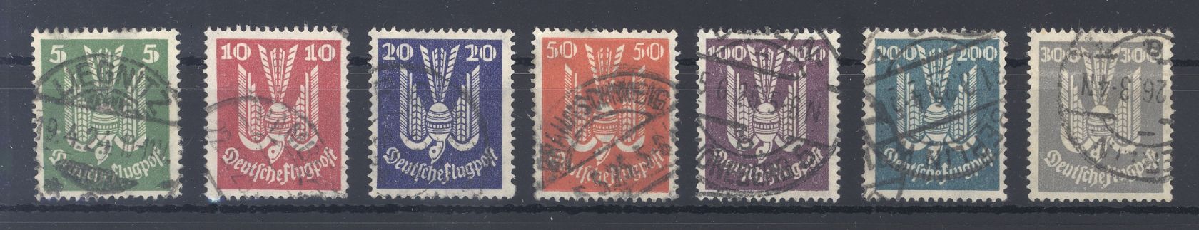 Deutsches Reich Michel Nummer 344/50, Flugpost 1924 gestempelt mit vielen schönen Stempeln.