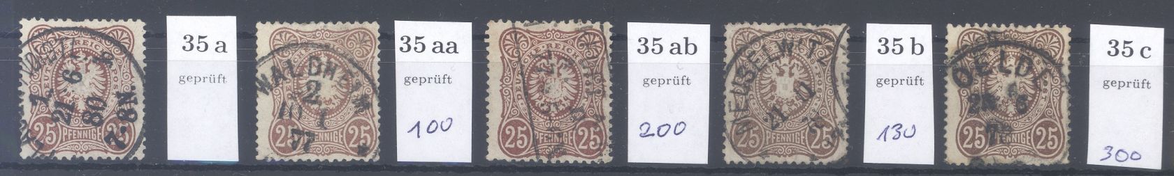 Deutsches Reich Michel Nummer Mi.Nr. 35, 25 Pfge. Adler/Krone 1875/79 in allen Farben gestempelt in etwas unterschiedlicher Erhaltung. Jeder Wert ist geprüft.