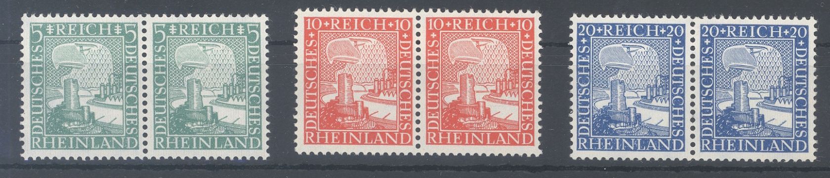 Deutsches Reich Mi.Nr. 372/74 Rheinland 1925 in ** Paaren. Nette Ergänzung zur Sammlung.