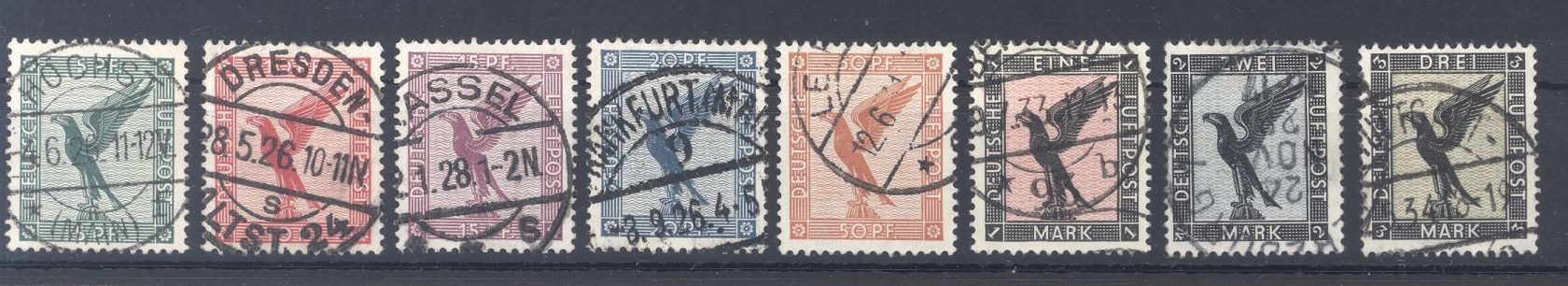 Deutsches Reich Michel Nummer 378/84 Flugpost 1926 gestempelt mit auch einigen sehr schönen Stempeln.