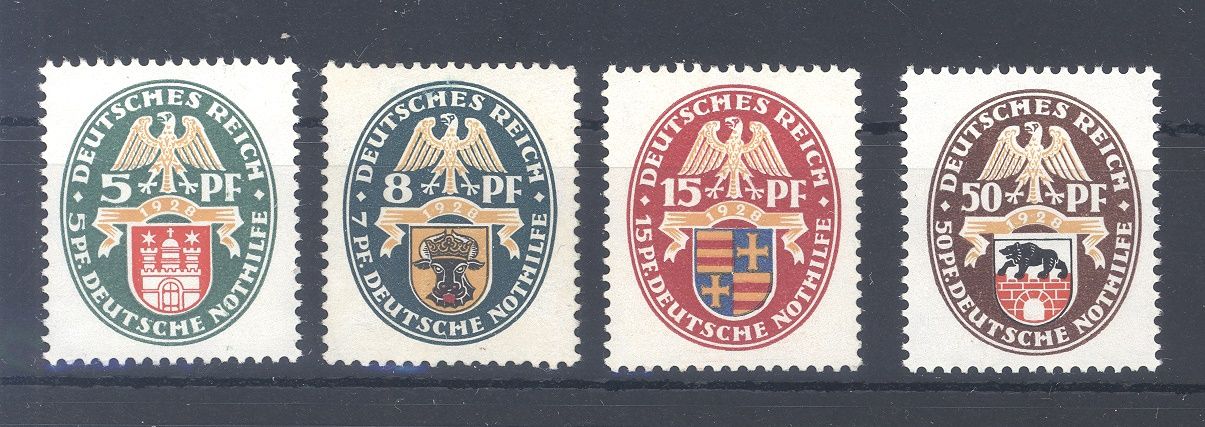Deutsches Reich Michel Nummer 425/27 und 429 aus Nothilfe 1928 **, es fehlt nur die Michel Nummer 428, die gibt es ungebraucht gratis dazu, ist nicht mit abgebildet.