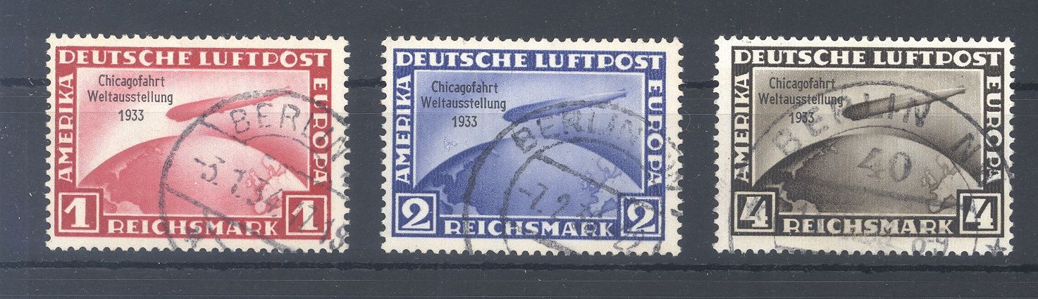 Deutsches Reich Michel Nummer 496/98 Zeppelin Chicagofahrt 1933 gestempelt.