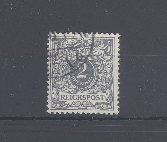 Deutsches Reich Michel Nummer 52 I, 2 Pfg. Freimarke 1889 mit dem Plattenfehler I gestempelt. Der Wert ist geprüft BPP.