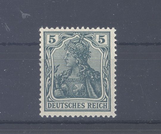 Deutsches Reich Michel Nummer 85 II e, 5 Pfg. Germania aus Freimarken 1915 in der Farbe e ** mit leichtem Farbabklatsch, sonst ordentlich. Der Wert ist geprüft BPP.