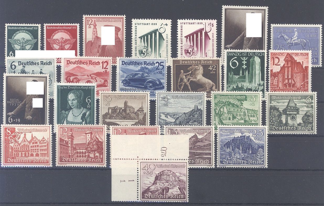 Deutsches Reich, kleinerer ** Posten aus dem Jahr 1939 bestehend aus Michel Nummer 689/701 und 730/38 auf Steckkarte.