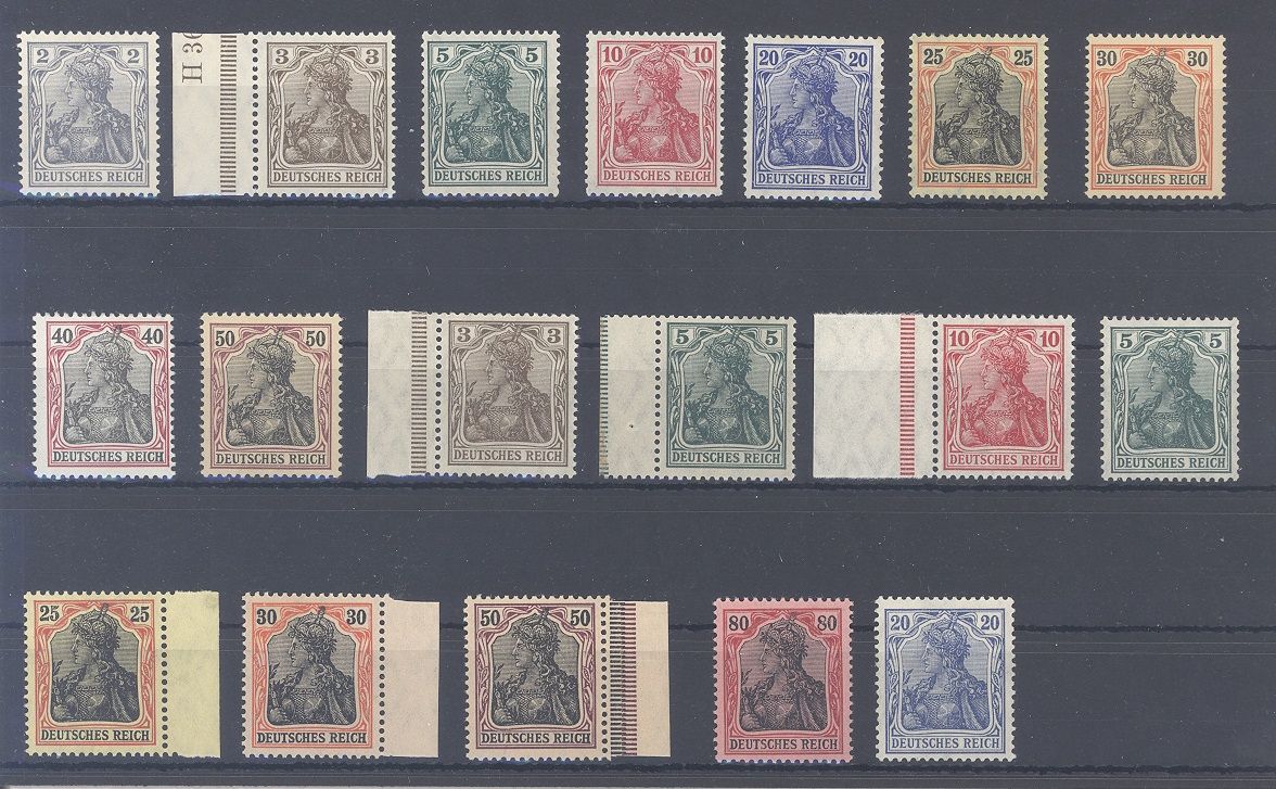 Deutsches Reich, */** Posten aus Michel Nummer 83/93, Germania 1905 auf Steckkarte, dabei auch einiges an Friedensdruck, zwei Werte sind geprüft.