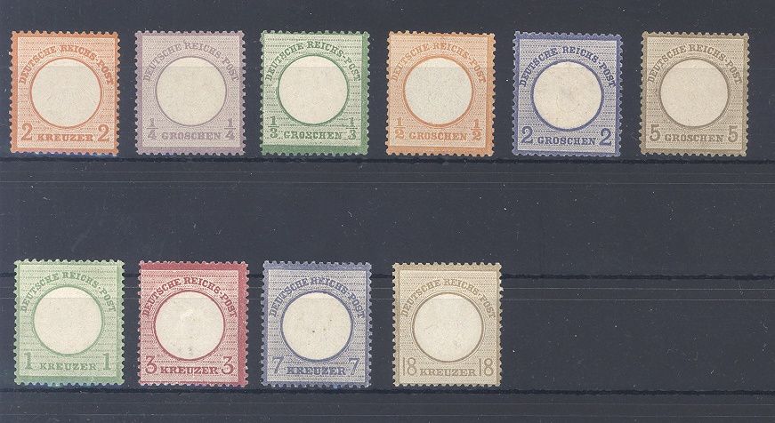 Deutsches Reich, netter */**, meist ungebrauchter * Posten Brustschilde auf Steckkarte. Es sind die Michel Nummer 15, 16/18 20, 22/23, 25/26 und 29 vorhanden. Der Michel für komplett ungebraucht * beträgt bereits 550,00 Euro.