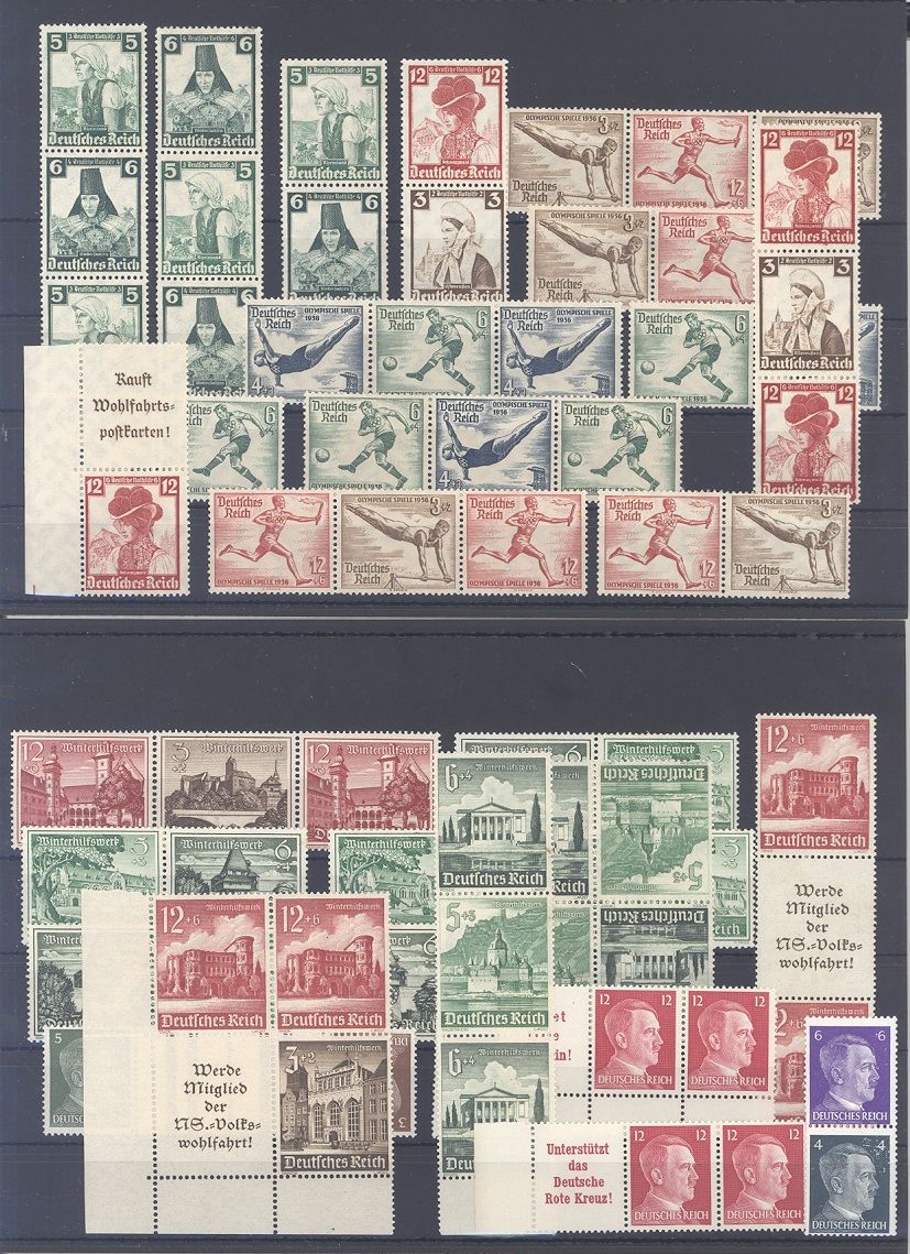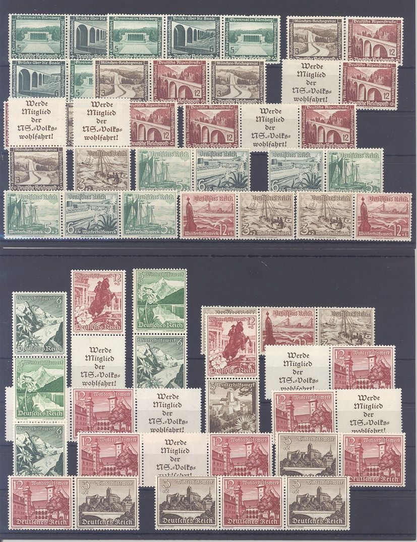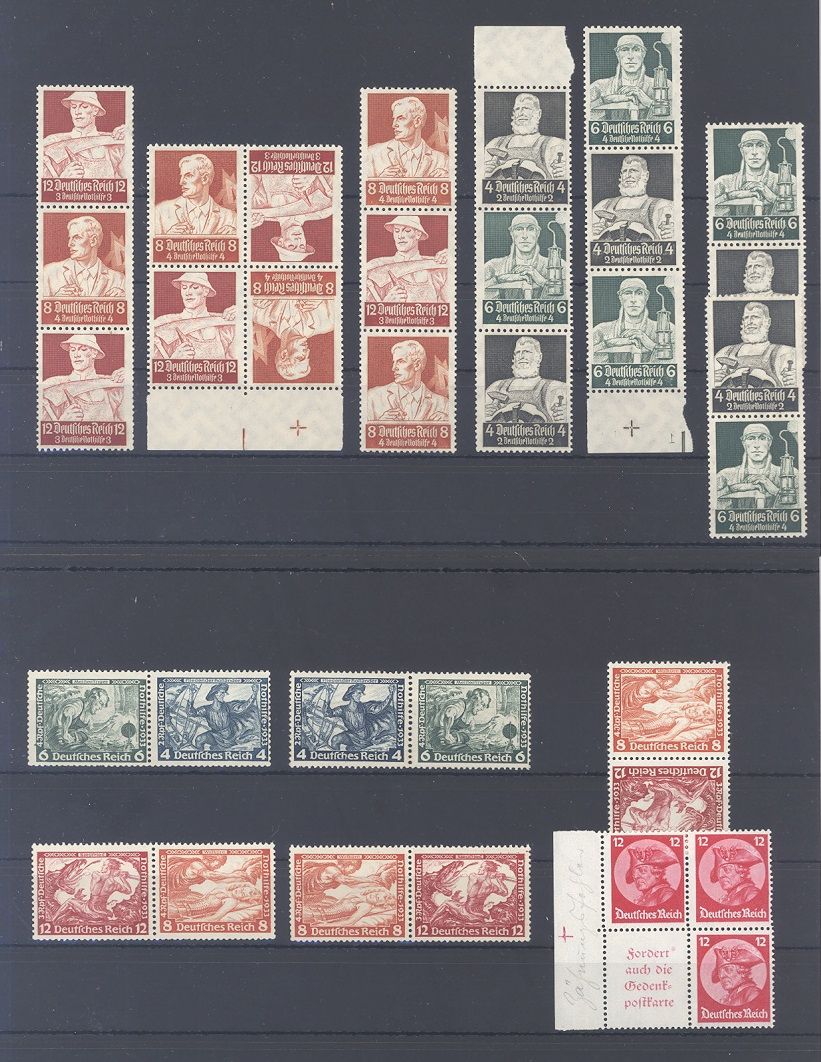 Deutsches Reich, umfangreicher **/* Posten Zusammendrucke ab Wagner auf sechs Steckkarten, einfach zusammengesteckt. Vollkommen unberechnet, sollte ein nettes Schnäppchen sein...