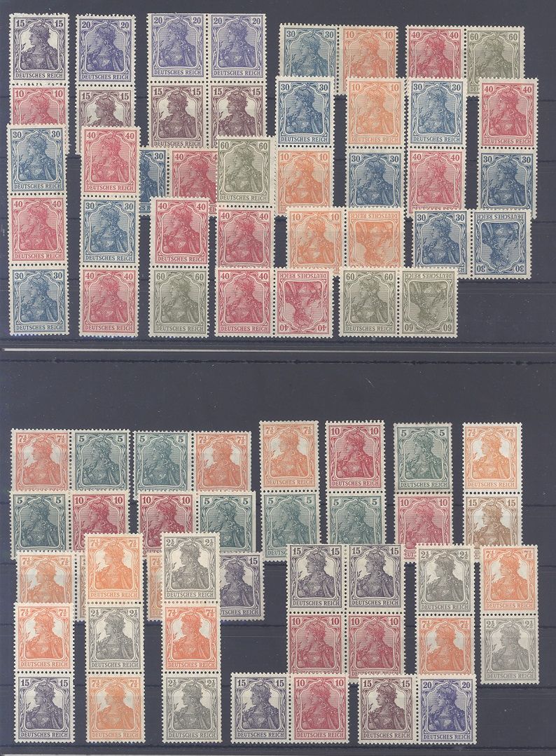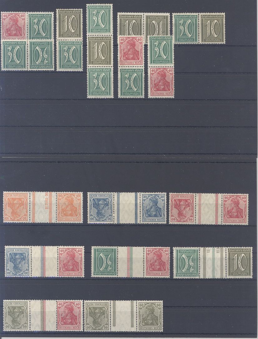 Deutsches Reich, umfangreicher **/* Posten Zusammendrucke aus den Jahren 1916/22 auf vier Steckkarten, dabei auch viele Kehrdrucke, einfach zusammengesteckt. Vollkommen unberechnet, sollte ein nettes Schnäppchen sein
