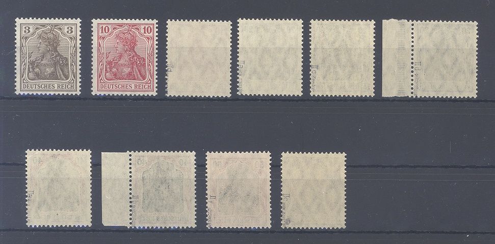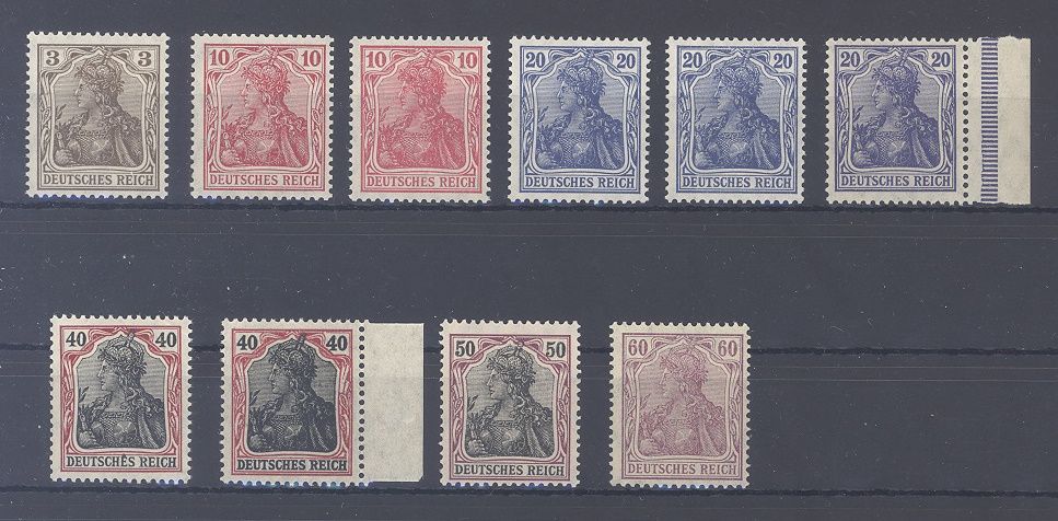 Deutsches Reich, ** Posten nur verschiedener Varianten und Farben aus Michel Nummer 84/93 II, Freimarken 1915 mit auch Michel Nummer 84 IIb, 86 IId, 87 IIc, 91 IIy und 92 IIc. Jeder Wert ist geprüft, hat bereits einiges gekostet.