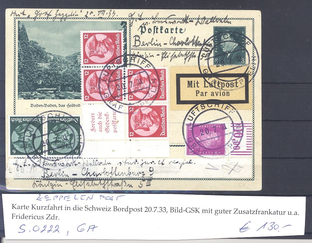 Deutsches Reich, interessante Zeppelin Karte in Bedarfserhaltung bestückt mit auch einem Reichstag 1933 Zusammendruck in die Schweiz gelaufen.