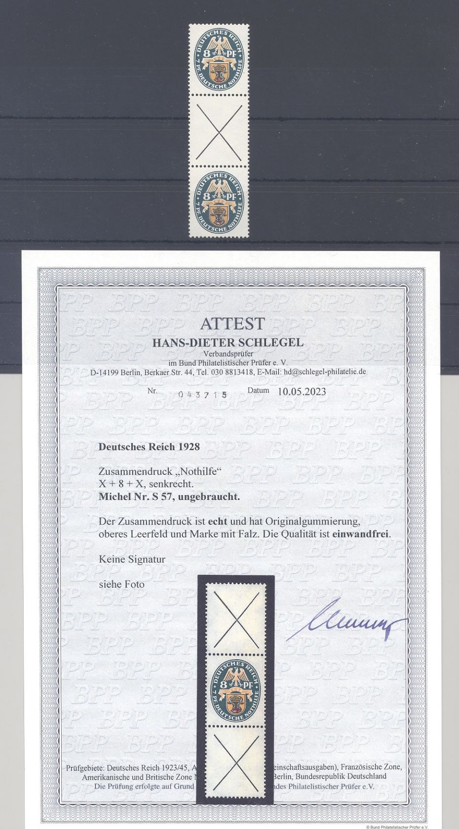 Deutsches Reich Zusammendruck Michel Nummer S 57, Nothilfe 1928 ungebraucht *. Es liegt ein FA BBP vor, hat bereits einiges gekostet, ist mit eingescannt.