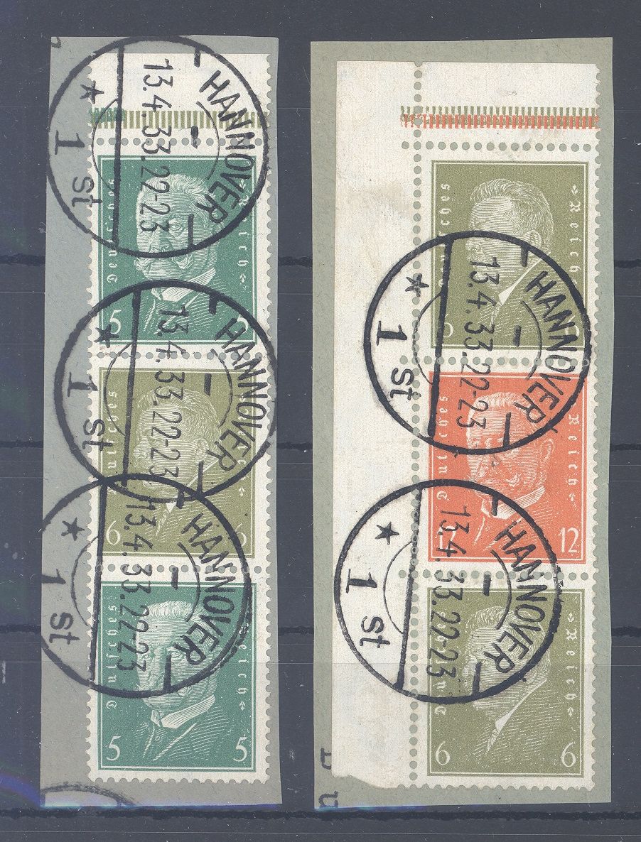 Deutsches Reich Zusammendruck Michel Nummer S 43 und S 47 aus Reichspräsidenten 1932 gestempelt mit hervorragenden Stempeln.