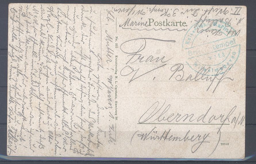 Deutsche Schiffspost, interessante gelaufene Ansichtskarte mit Motiv S.M.S. Markgraf nach Oberndorf gelaufen. Nette Ergänzung zur Sammlung!