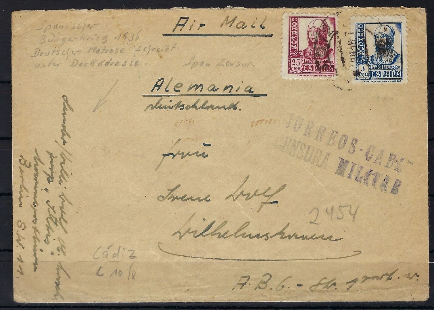 Feldpost der Legion Condor 1938, vom Bord des Kanonenboots Iltis, FP 17229