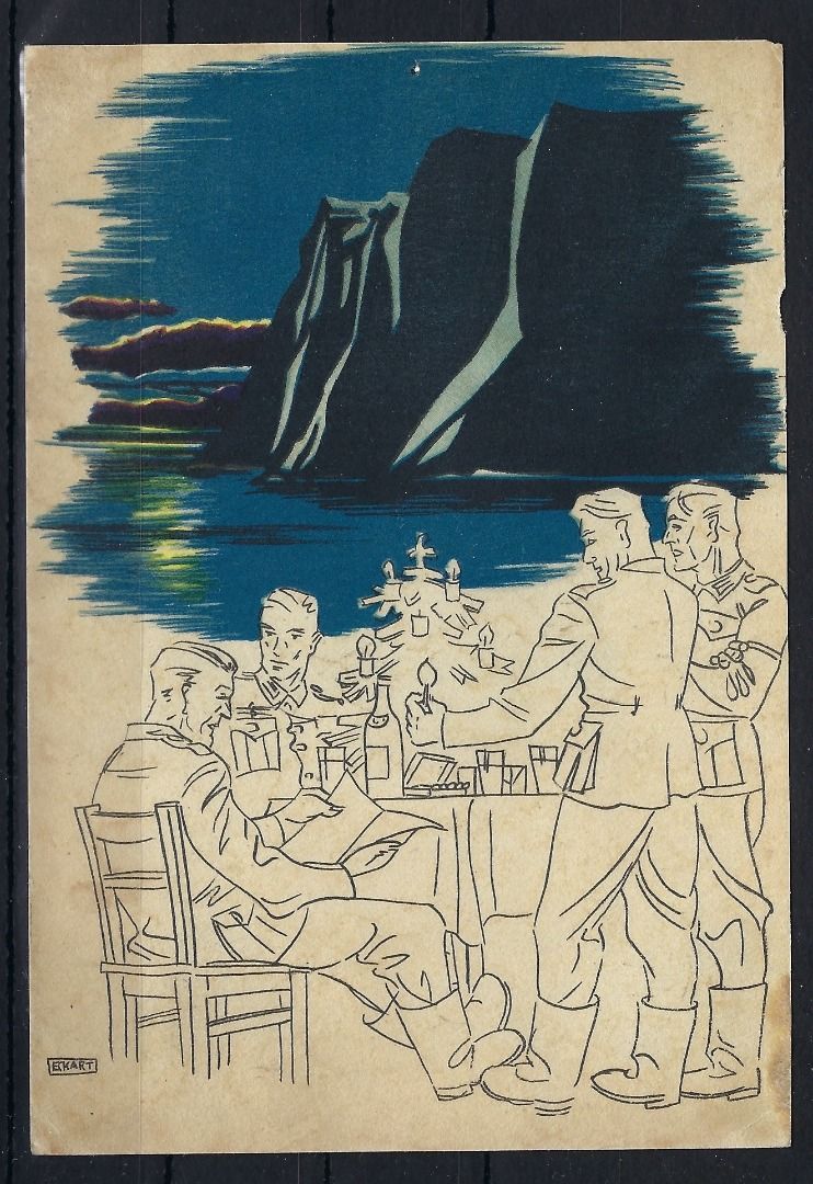 Feldpostkarte Schlachtschiff Scharnhorst Norwegen 1943, vier Wochen vor der Versenkung durch englische Kriegsschiffe am 26.12.1943