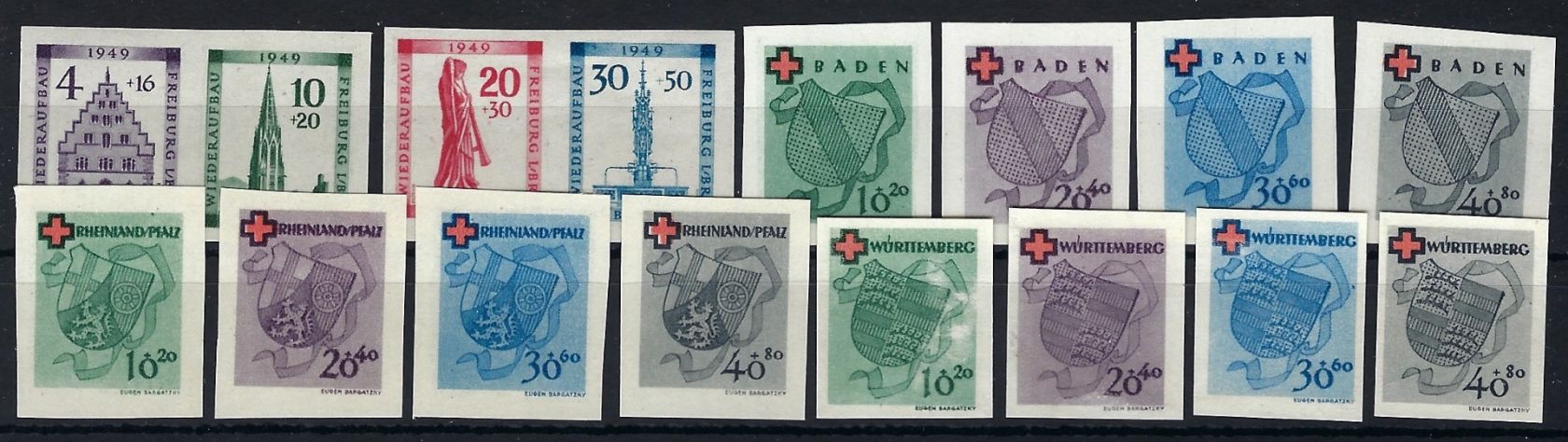 Fr. Zone Baden - Württemberg, alle Blockmarken der ungezähnten Blocks, Baden Block 1 B ** sowie die 3 Rotkreuz Blocks (*) wie verausgabt