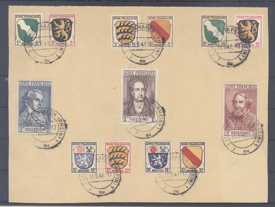 Französische Zone Allg. Ausgaben Michel Nummer 1/13 gestempelt auf großem Briefstück mit klarem Stempel Ludwigshafen.