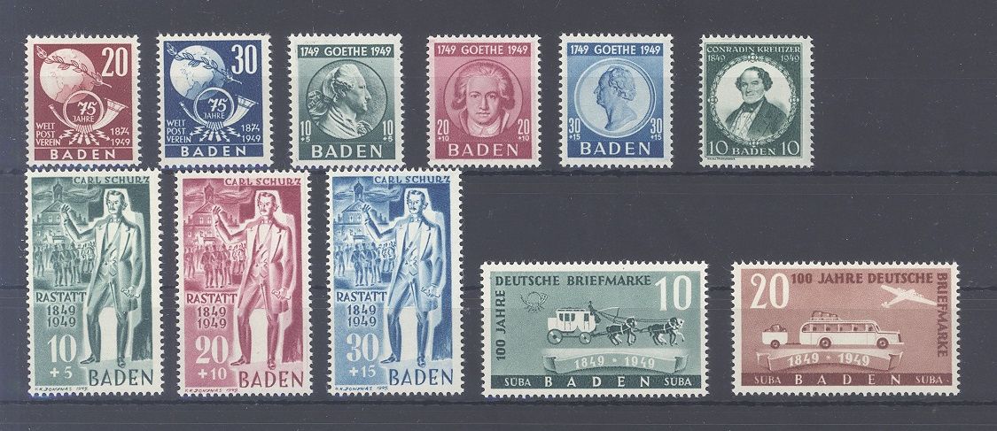 Französische Zone Baden, ** Posten aus dem Jahr 1949 bestehend aus Michel Nummer 47/57.