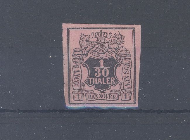 Hannover Michel Nummer 3, 1/30 Thaler 1851 ungebraucht (*), links heller. Ungebraucht selten einmal angeboten.
