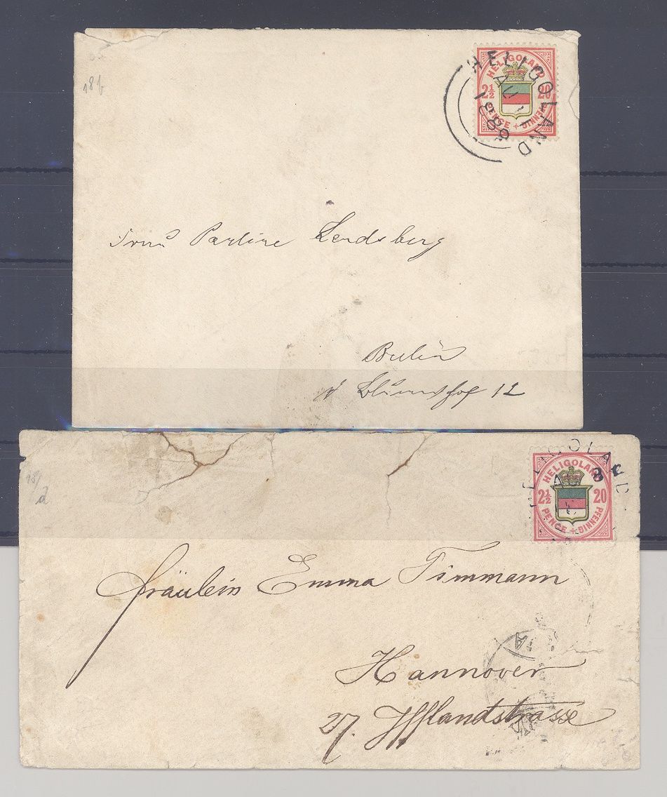 Helgoland, zwei Briefe in Bedarfserhaltung frankiert mit 20 Pfg. EF gelaufen als Posten. Nette Ergänzung zur Sammlung!