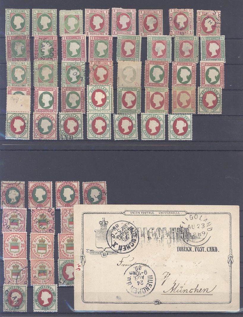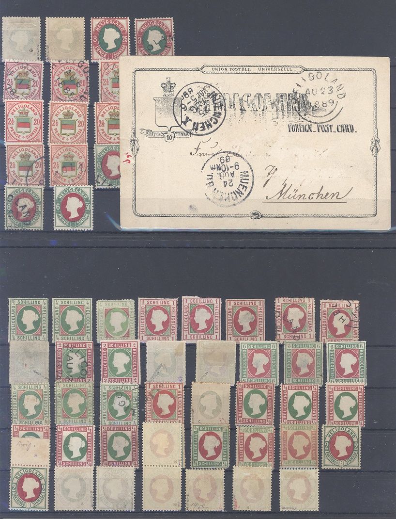 Helgoland, interessanter Posten mit auch einigen gestempelten Werten und geprüften Werten auf Steckkarte, einfach zusammengesteckt. Vollkommen unberechnet, sollte chancenreich und ein nettes Schnäppchen sein