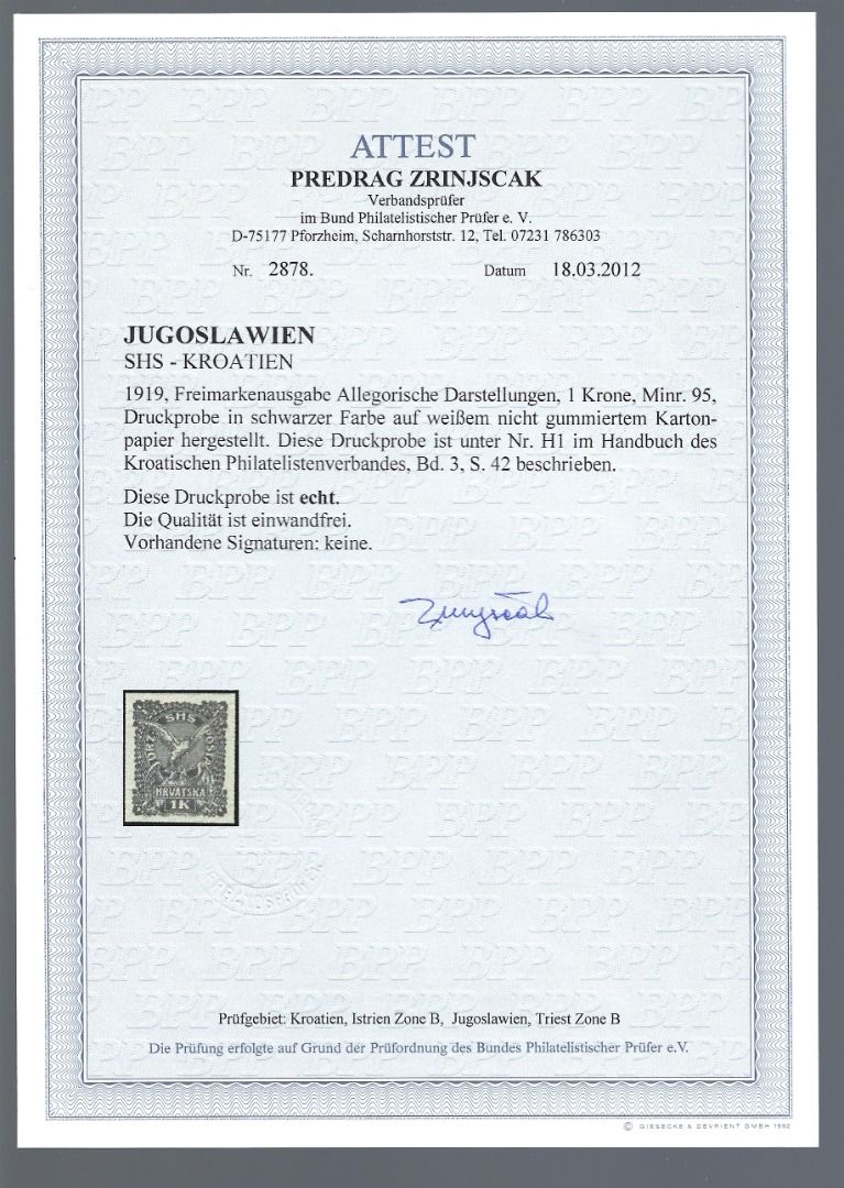 Jugoslawien / SHS-Kroatien 1919, Mi 95 U (*) Probe, FA Zrinjscak