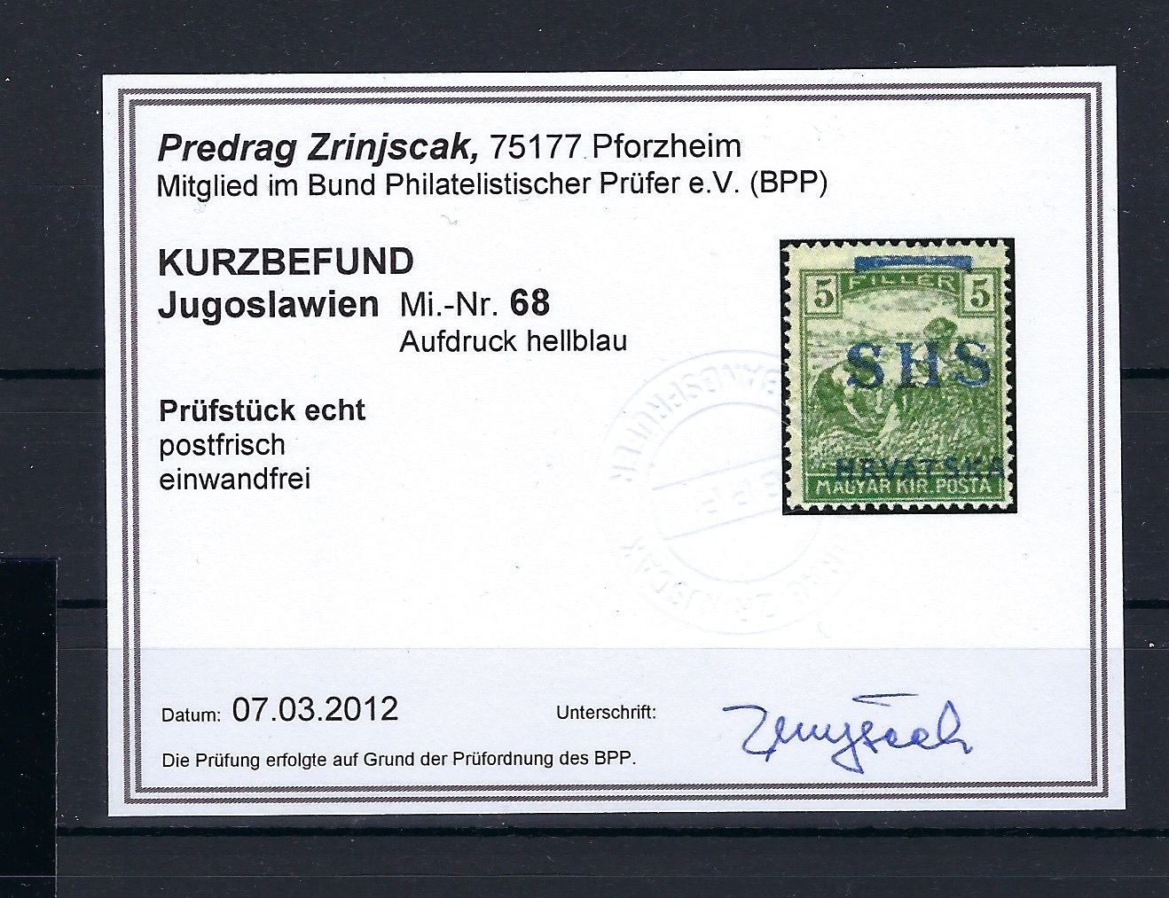 Jugoslawien / SHS-Kroatien, Mi 68 ** Aufdruck hellblau, KB Zrinjscak