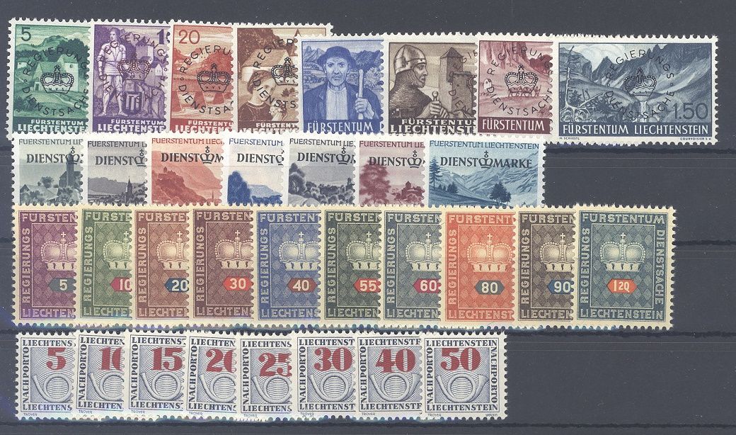 Liechtenstein Dienst und Porto, ** Posten auf Steckkarte. Es sind die Mi.Nr. 20/44 und Porto Mi.Nr. 21/28 vorhanden.