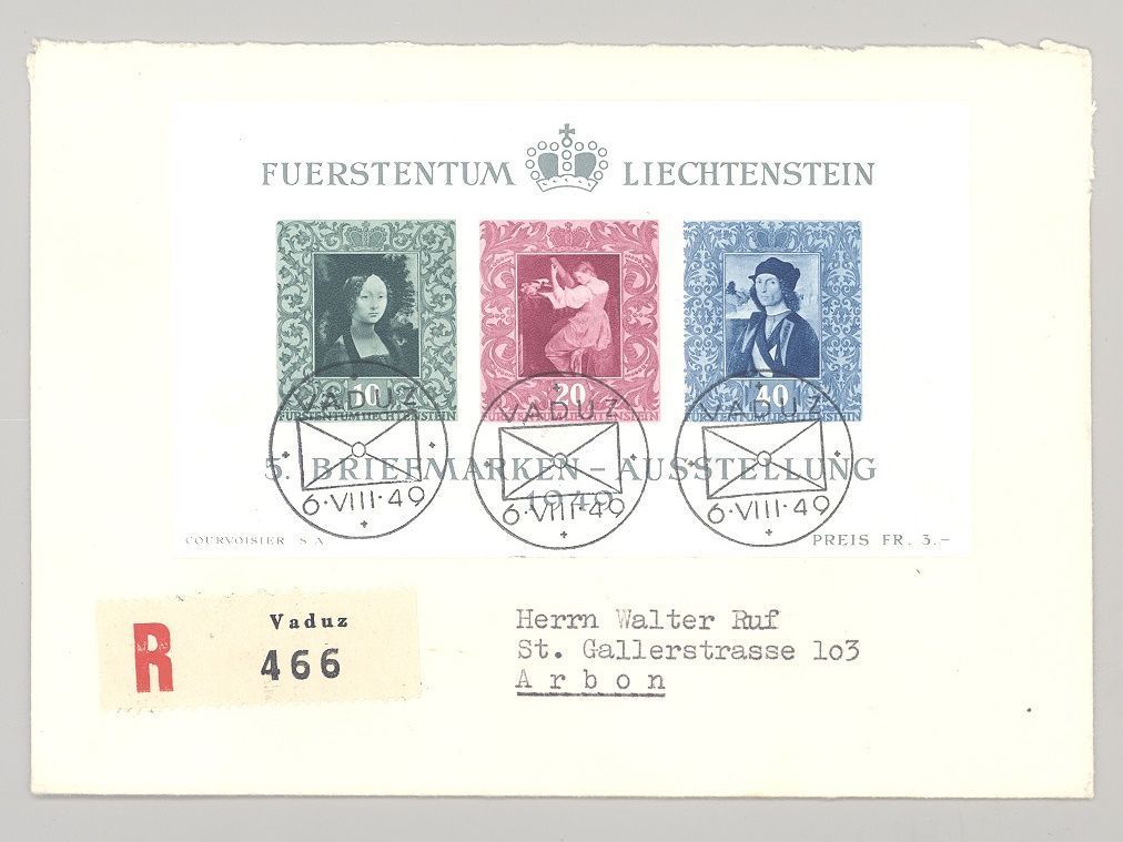 Liechtenstein, FDC Block 5, Briefmarkenausstellung 1949. Nette Ergänzung zur Sammlung.
