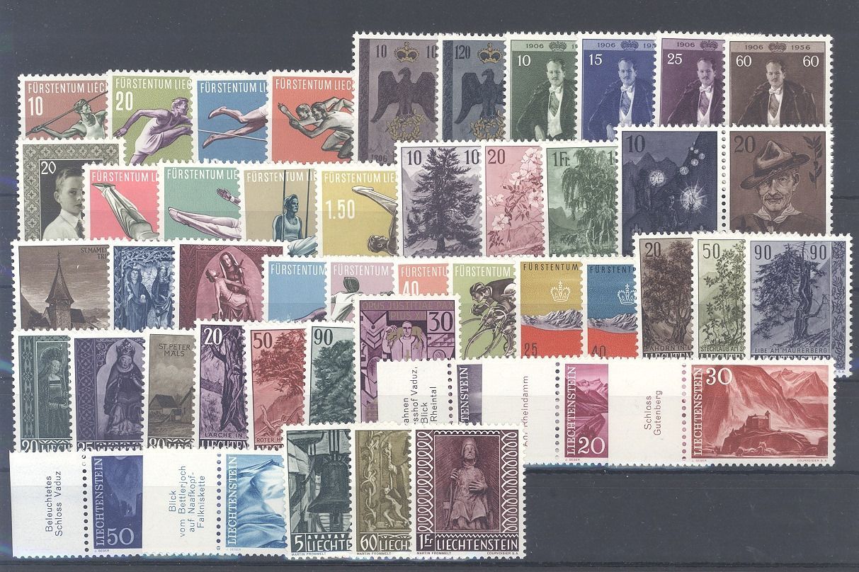 Liechtenstein Michel Nummer 342/388, die Jahre 1956/59 ** auf Steckkarte