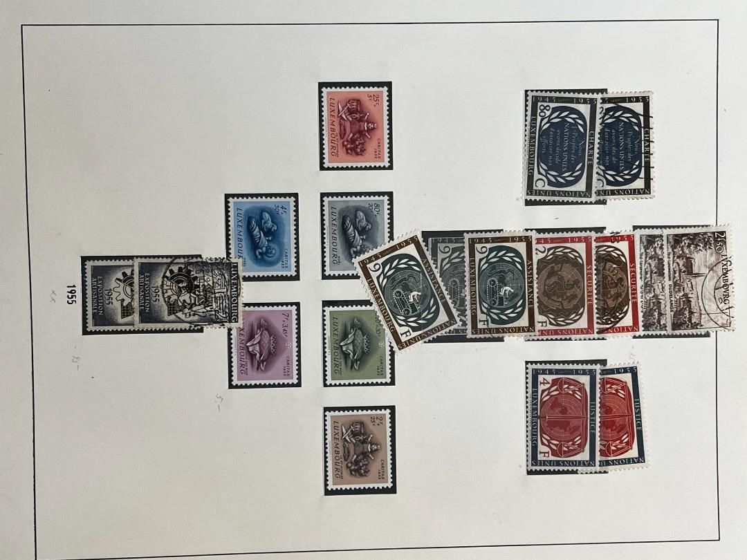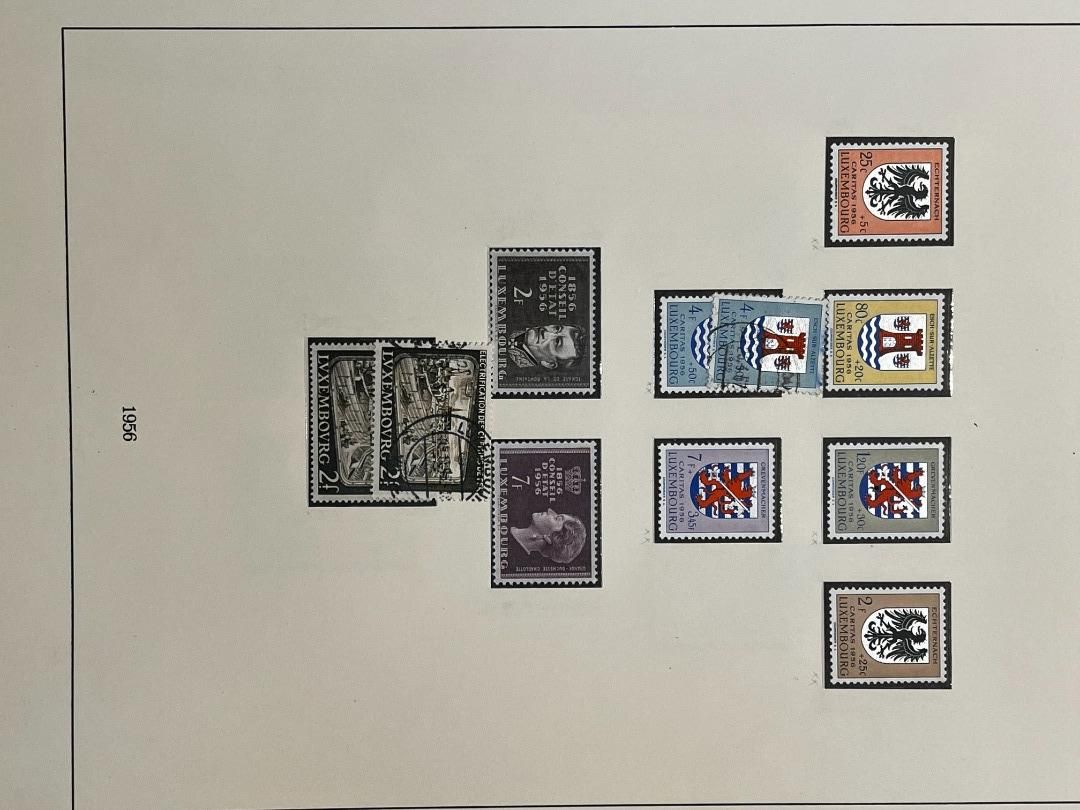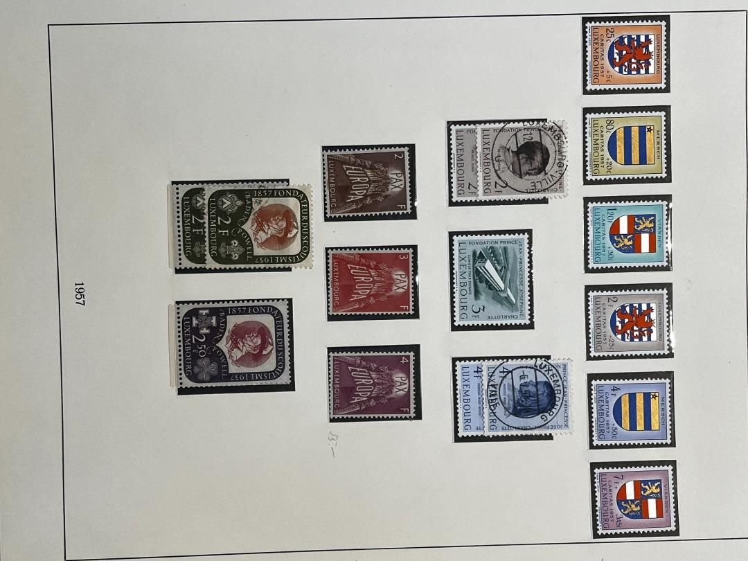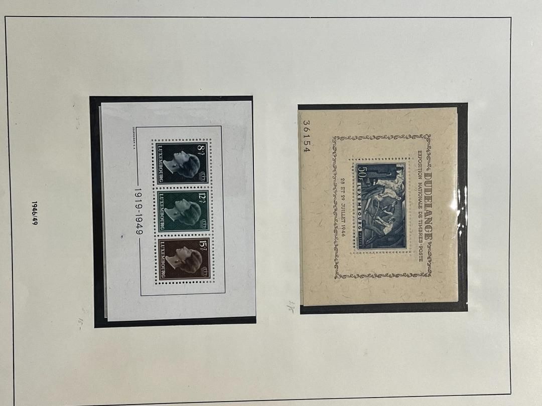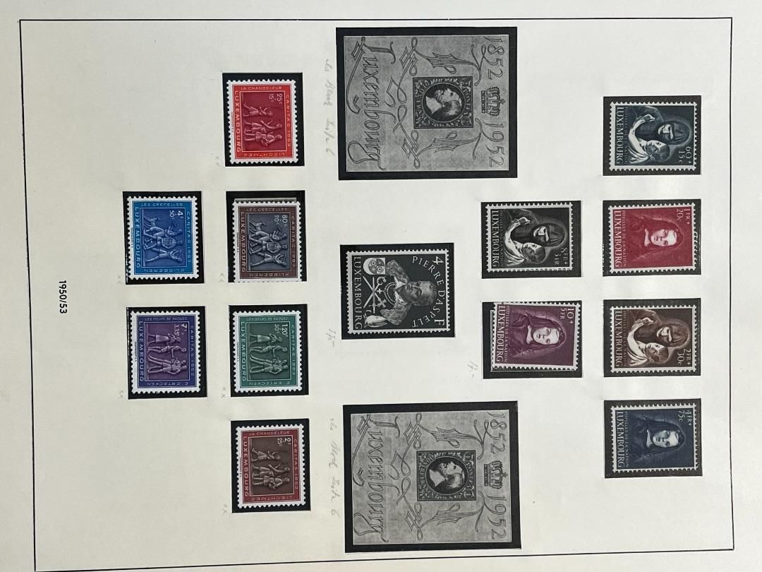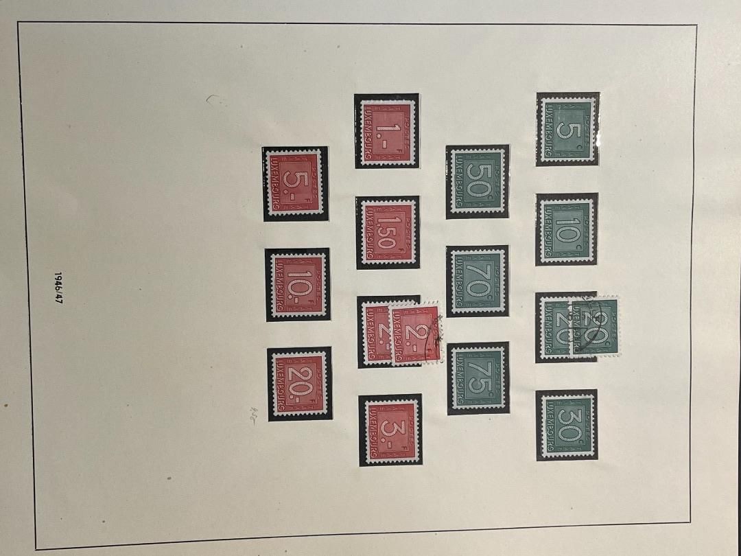 Luxemburg-Sammlung in postfrischer, ungebrauchter und gestempelter Erhaltung im Lindner Falzlos-Vordruckalbum. Beginnend ab Mi. 1 (zwei Exemplare), Mi. 2 (3 Exemplare) sowie viele mittlere Ausgaben und Sätze in guter postfrischer Qualität, einschließlich guter Teildienst- und Portomarken. Katalogwert ca. 10.750 Euro. Die Sammlung ist vollständig abgebildet