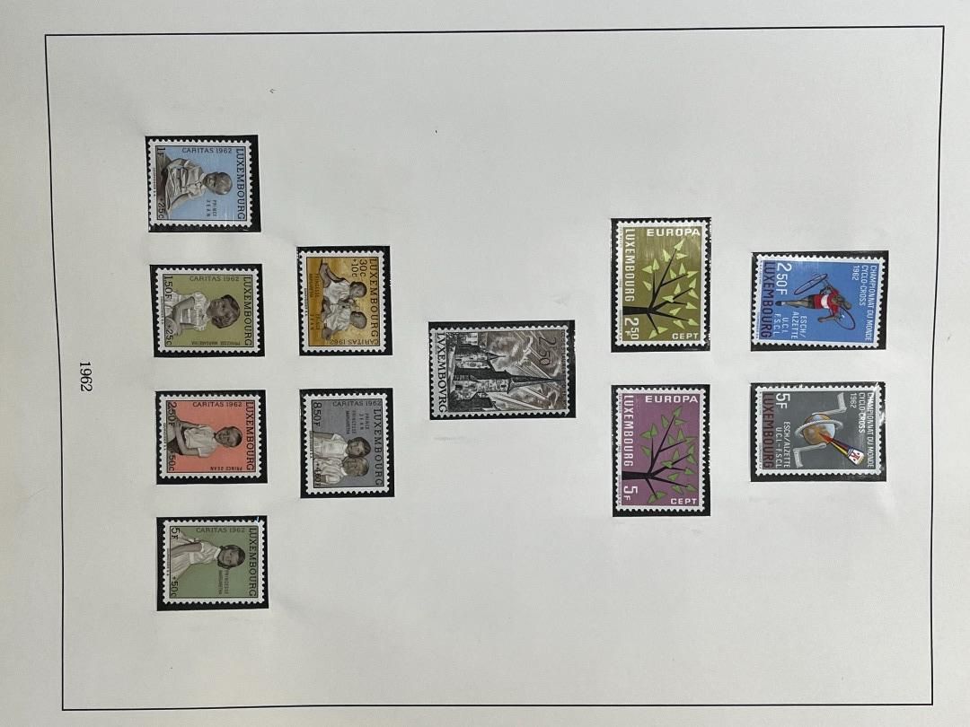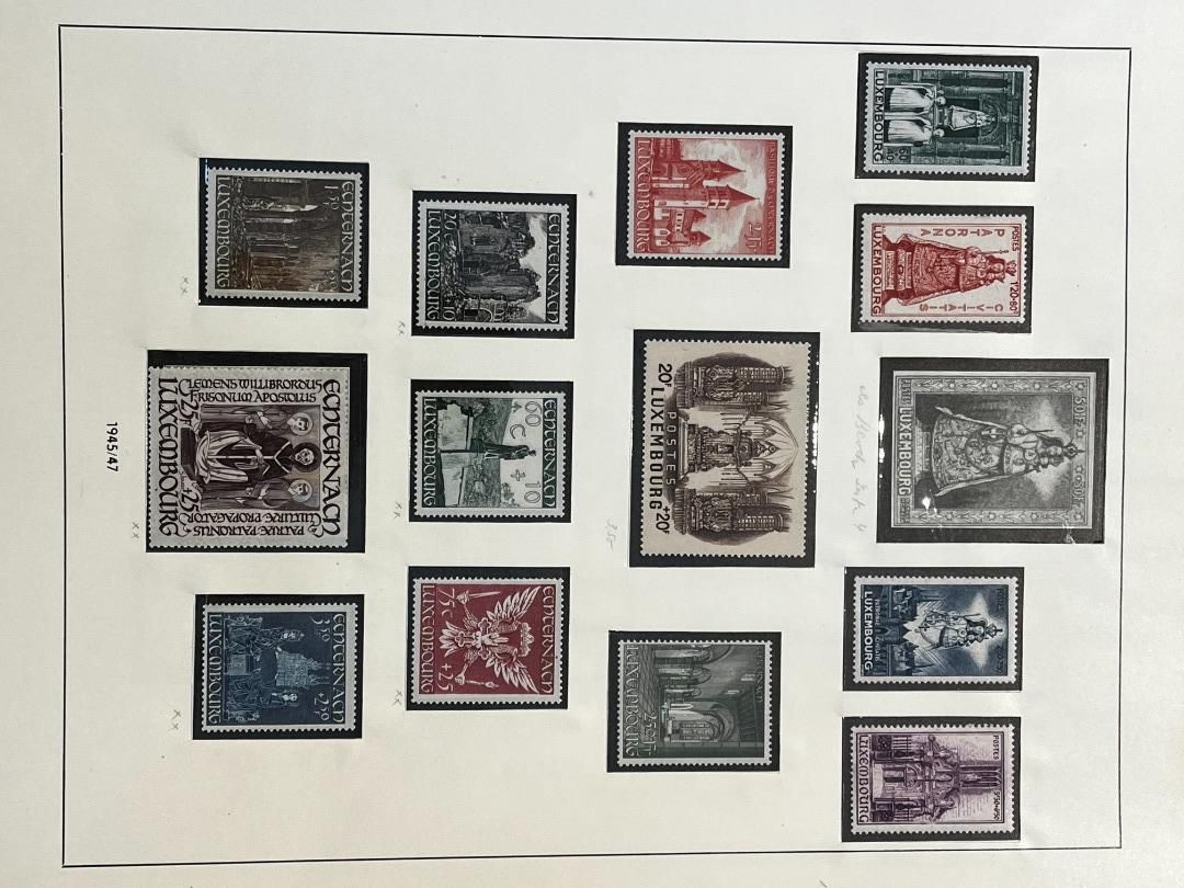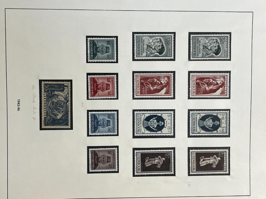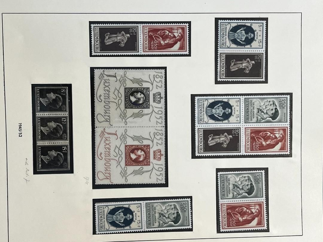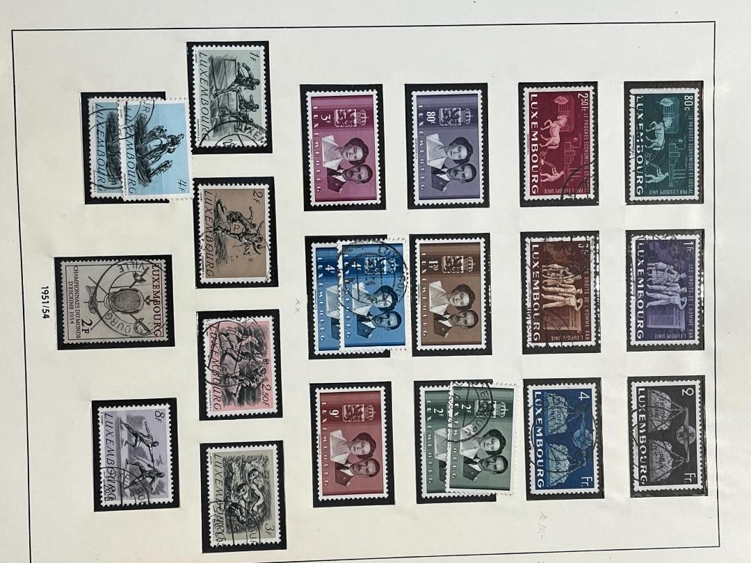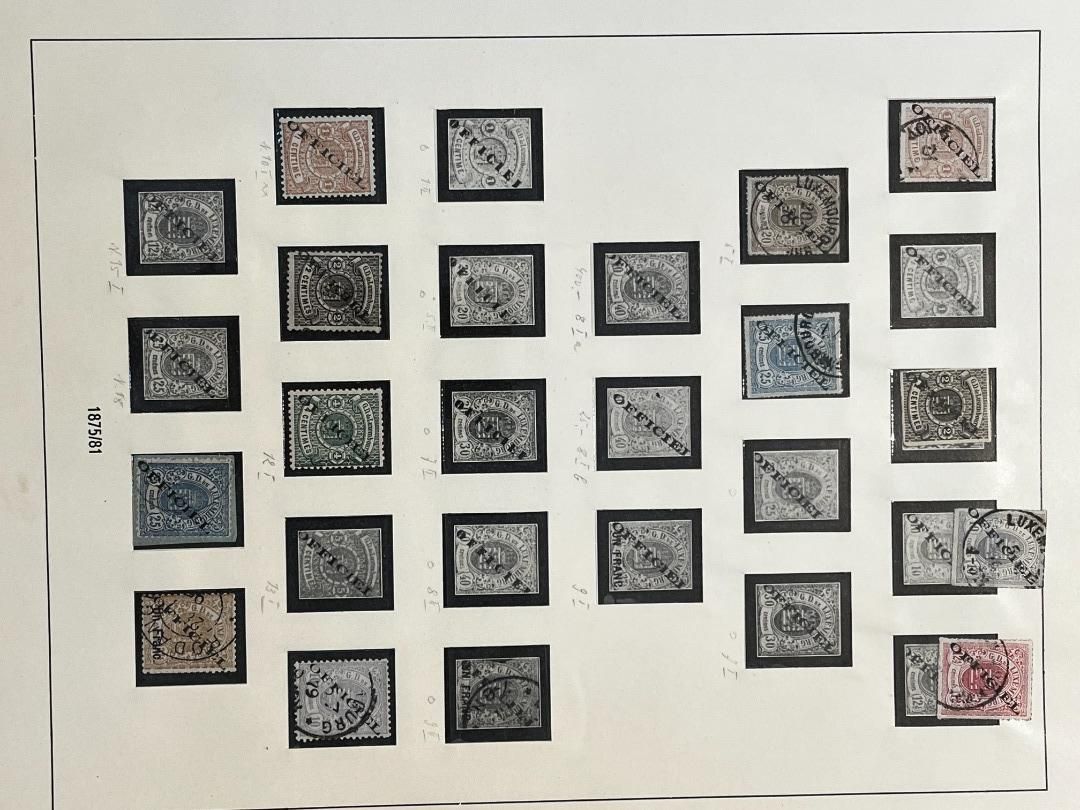Luxemburg-Sammlung in postfrischer, ungebrauchter und gestempelter Erhaltung im Lindner Falzlos-Vordruckalbum. Beginnend ab Mi. 1 (zwei Exemplare), Mi. 2 (3 Exemplare) sowie viele mittlere Ausgaben und Sätze in guter postfrischer Qualität, einschließlich guter Teildienst- und Portomarken. Katalogwert ca. 10.750 Euro. Die Sammlung ist vollständig abgebildet