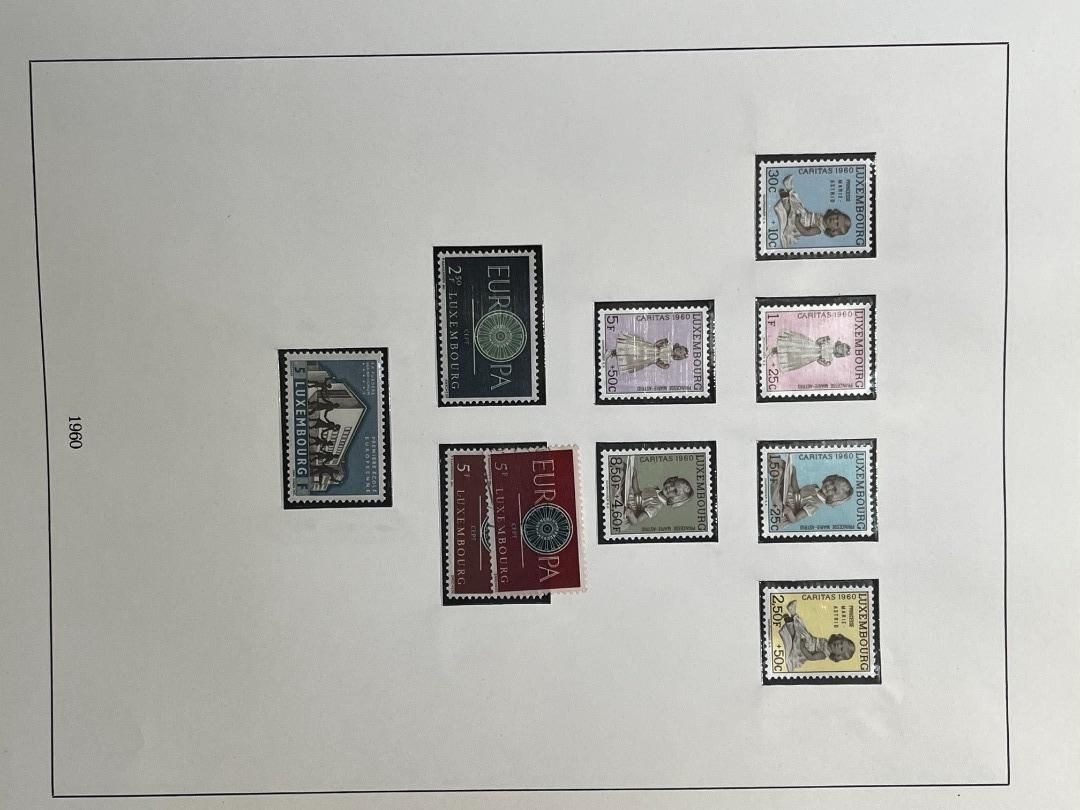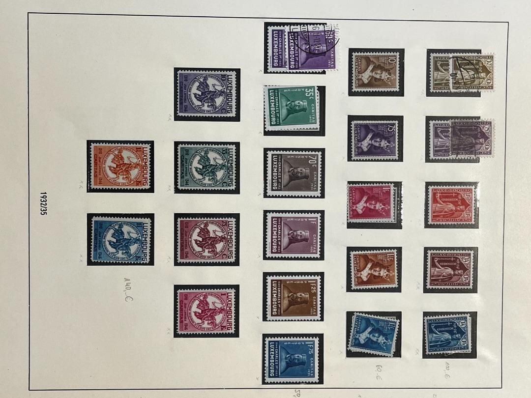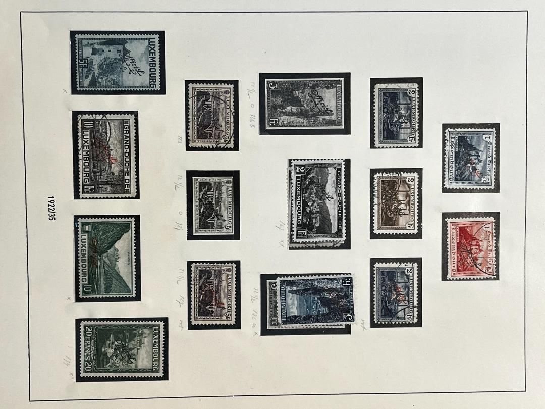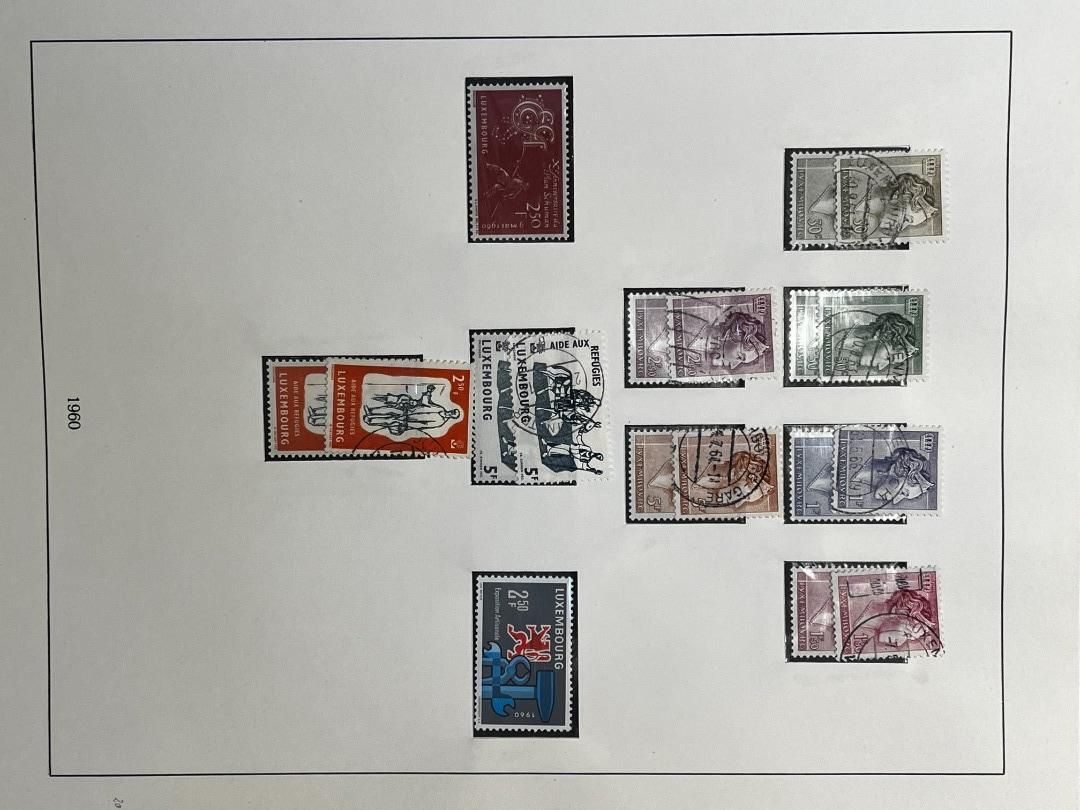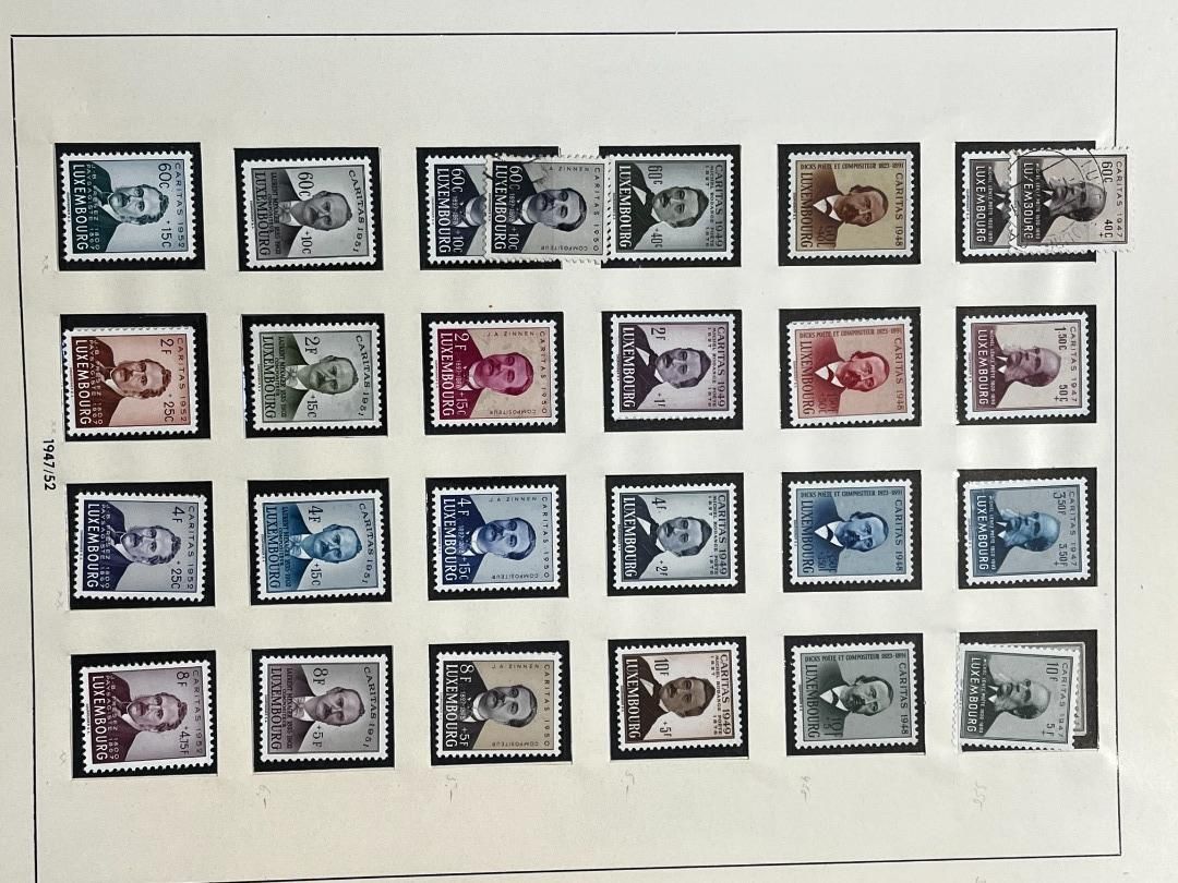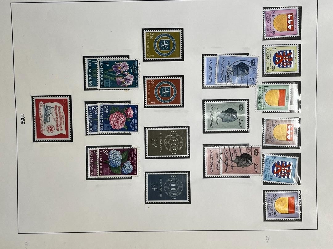 Luxemburg-Sammlung in postfrischer, ungebrauchter und gestempelter Erhaltung im Lindner Falzlos-Vordruckalbum. Beginnend ab Mi. 1 (zwei Exemplare), Mi. 2 (3 Exemplare) sowie viele mittlere Ausgaben und Sätze in guter postfrischer Qualität, einschließlich guter Teildienst- und Portomarken. Katalogwert ca. 10.750 Euro. Die Sammlung ist vollständig abgebildet