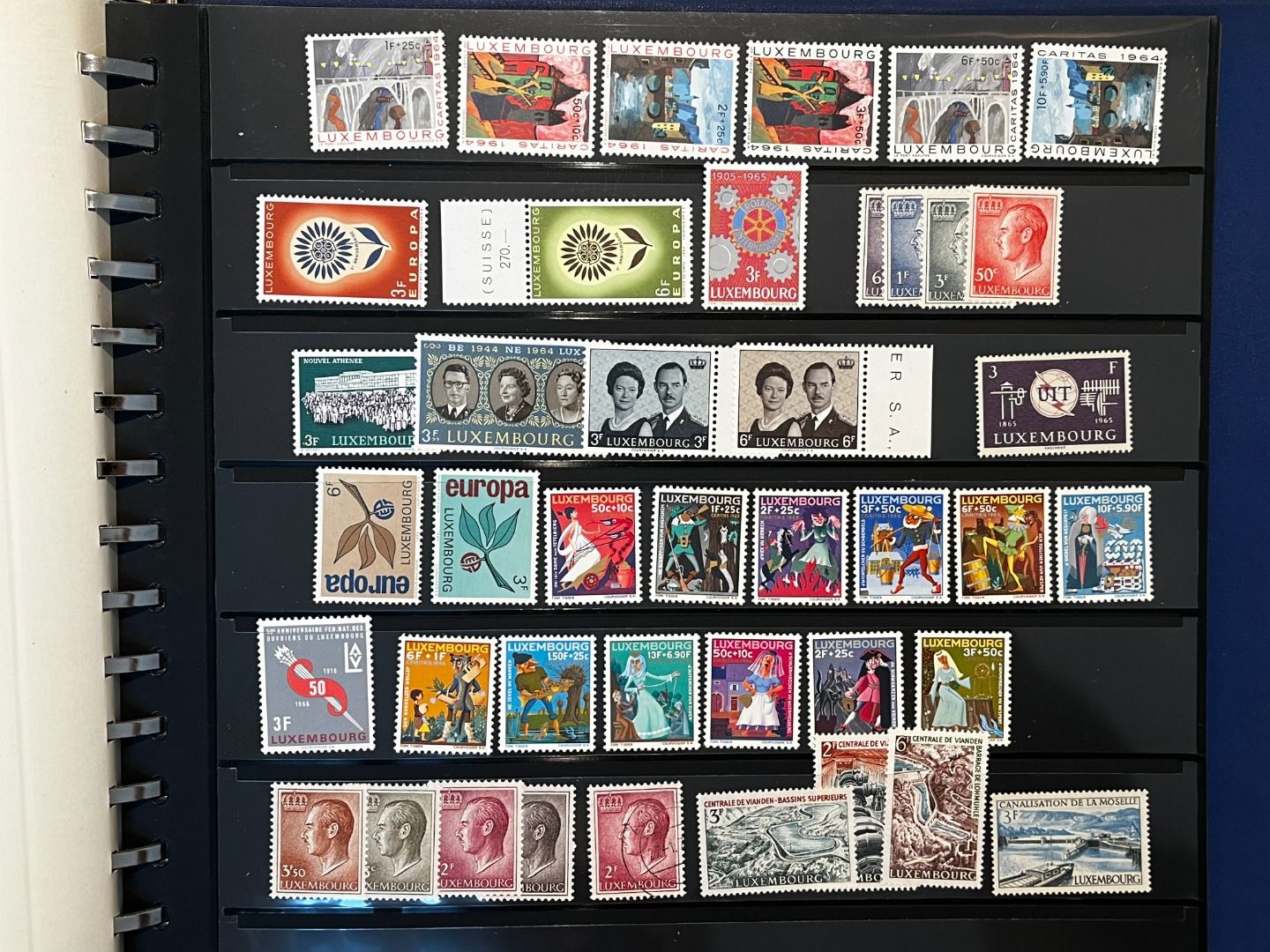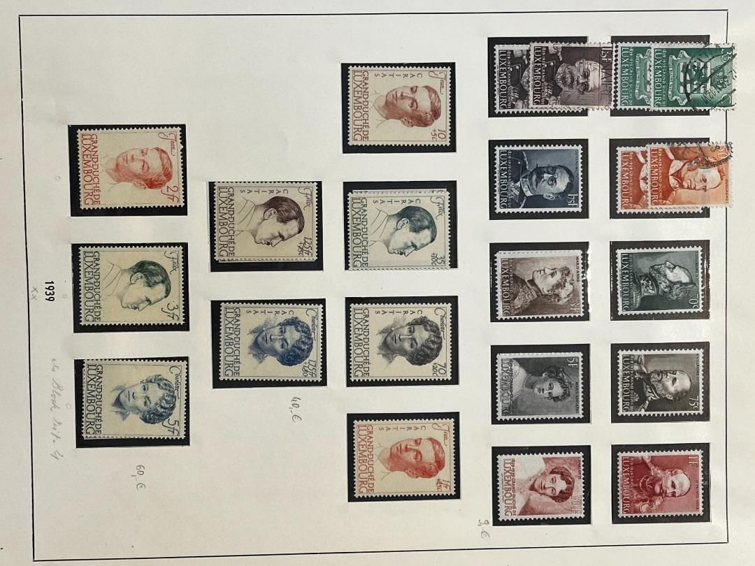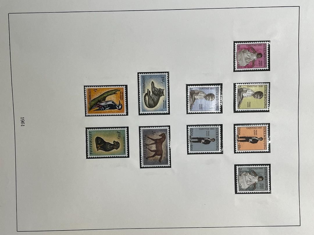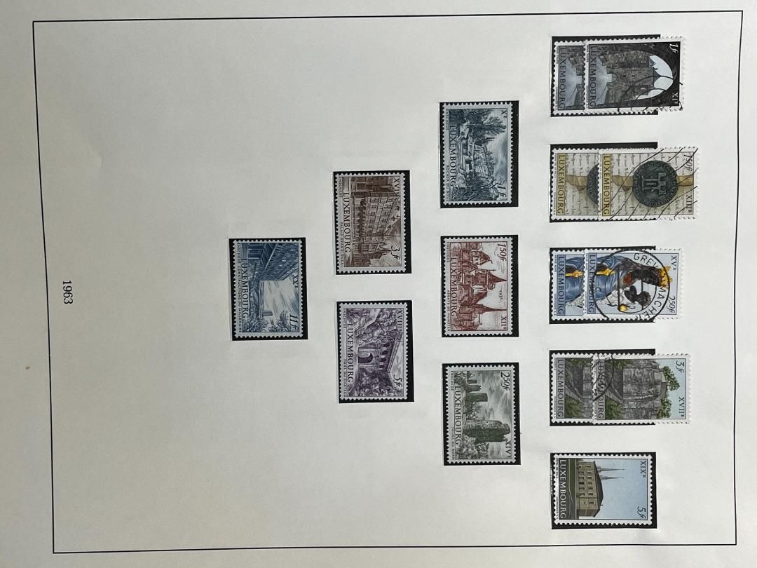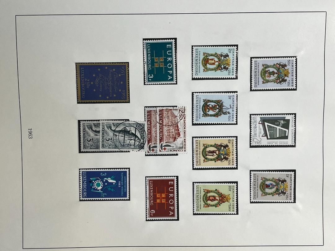 Luxemburg-Sammlung in postfrischer, ungebrauchter und gestempelter Erhaltung im Lindner Falzlos-Vordruckalbum. Beginnend ab Mi. 1 (zwei Exemplare), Mi. 2 (3 Exemplare) sowie viele mittlere Ausgaben und Sätze in guter postfrischer Qualität, einschließlich guter Teildienst- und Portomarken. Katalogwert ca. 10.750 Euro. Die Sammlung ist vollständig abgebildet