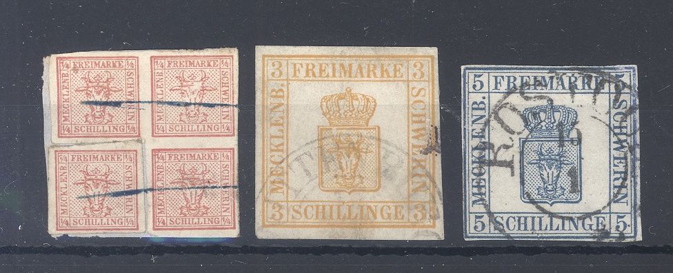 Mecklenburg Schwerin Michel Nummer 1/3, Freimarken 1856 gestempelt.