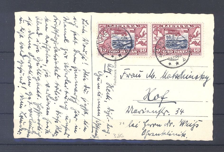 Memel, saubere Ansichtskarte vom 31.3.1939 frankiert mit Litauischer Frankatur aus Memel nach Hof gelaufen.