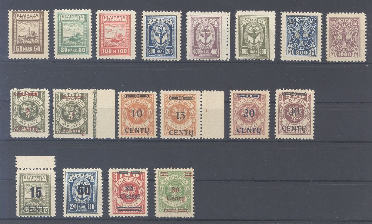 Memel Litauische Besetzung, ** Posten in leicht unterschiedlicher, insgeamt ordentlicher Erhaltung auf Steckkarte.